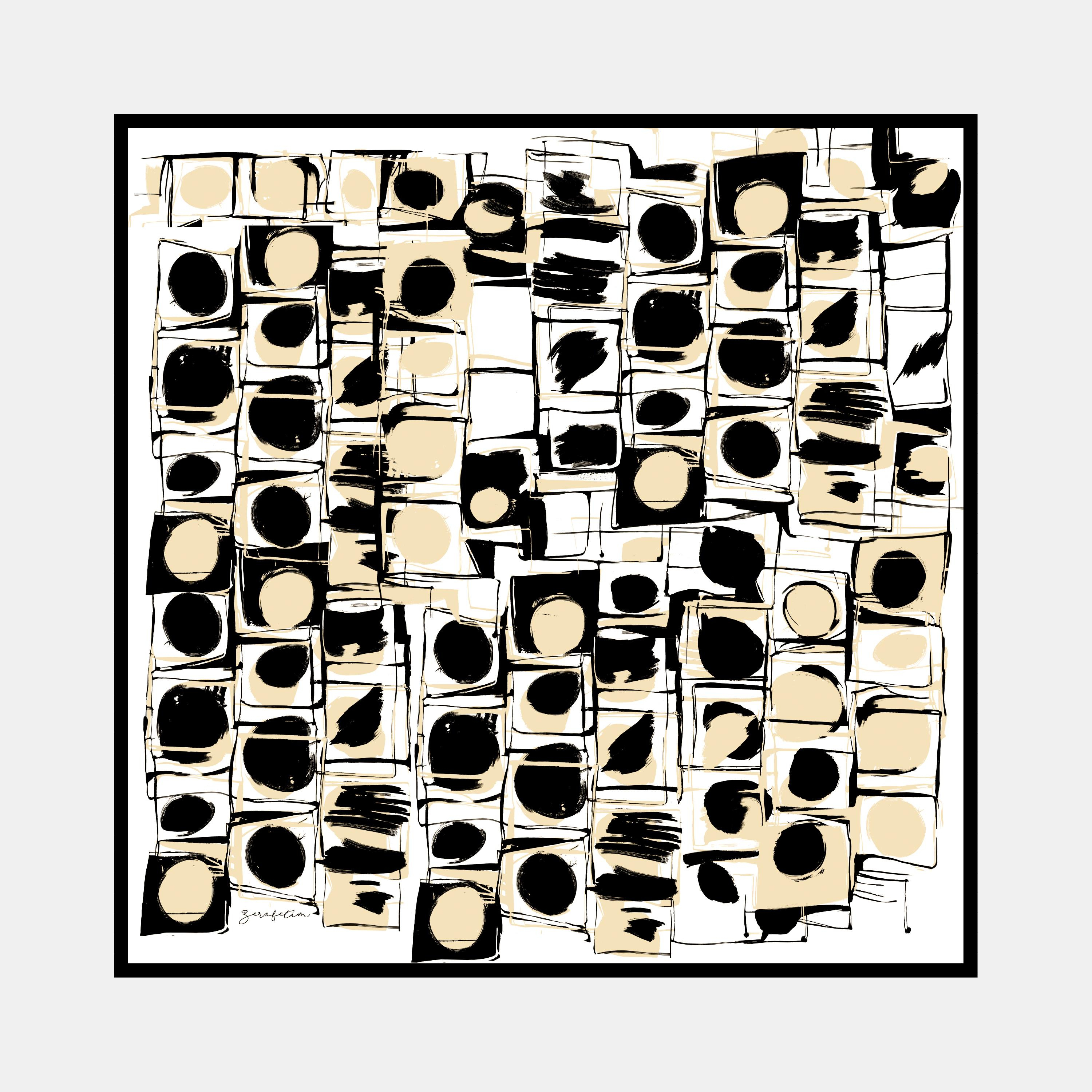 Çizgi Daire Desen İpek Twill Eşarp