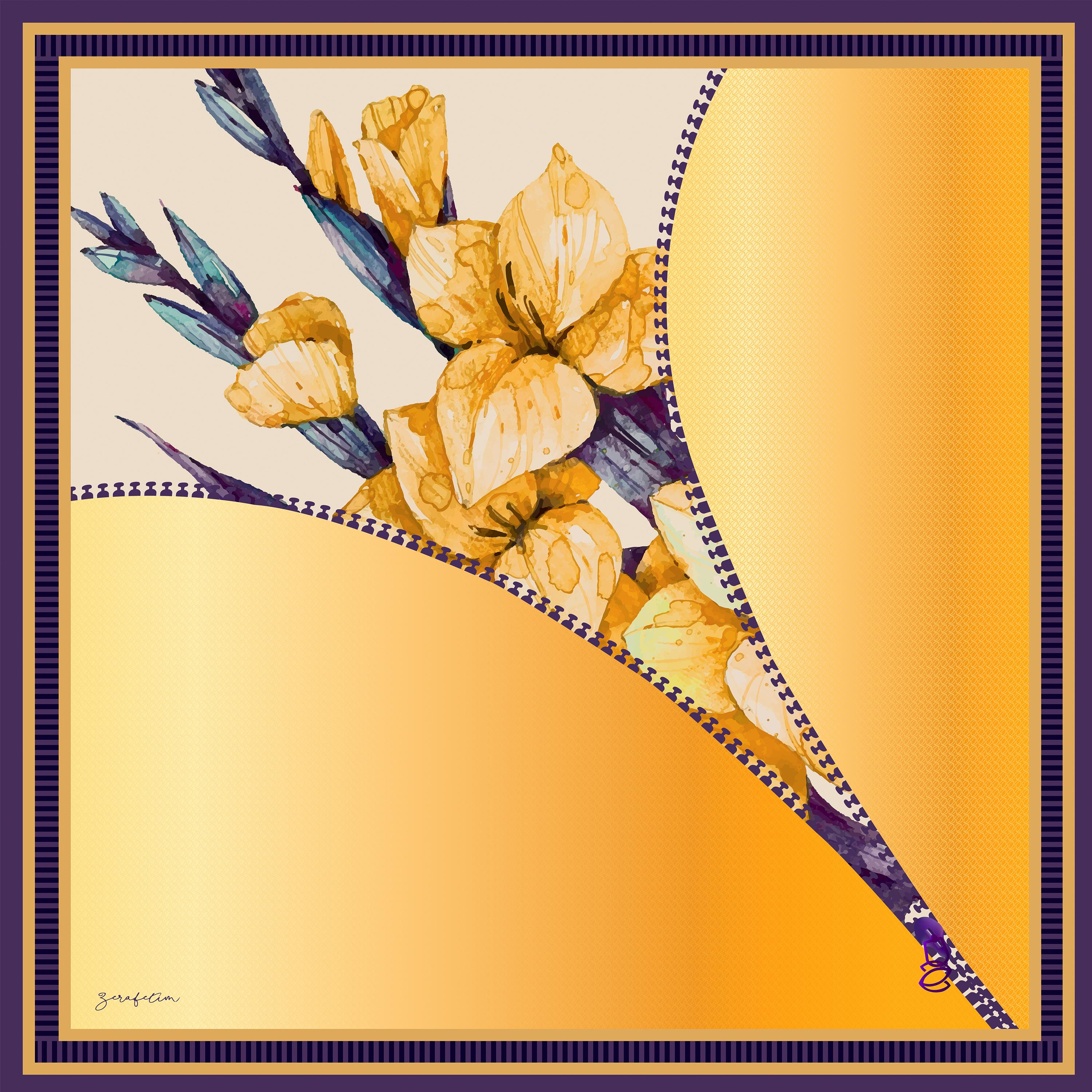 Fermuar Çiçek Desen İpek Twill Eşarp